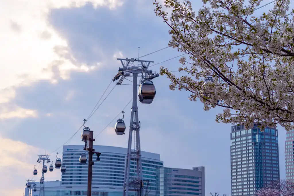 春の横浜を空から彩る。運河パークで出会う「桜とロープウェイ」の絶景撮影記