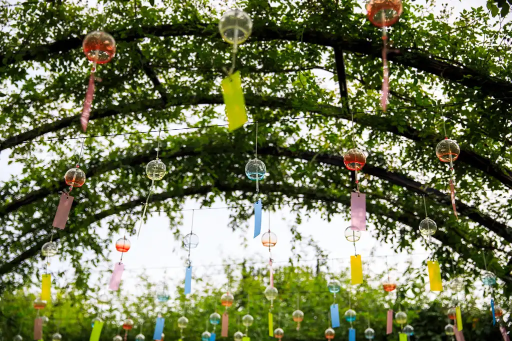色とりどりの風鈴と風車のトンネルが見ごたえあります。