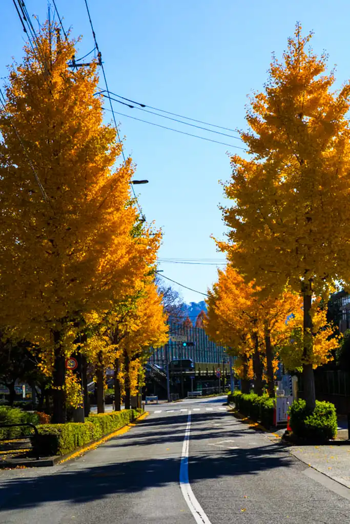 こちらは、郷土の森博物館と郷土の森公園の間にあるイチョウ並木です。