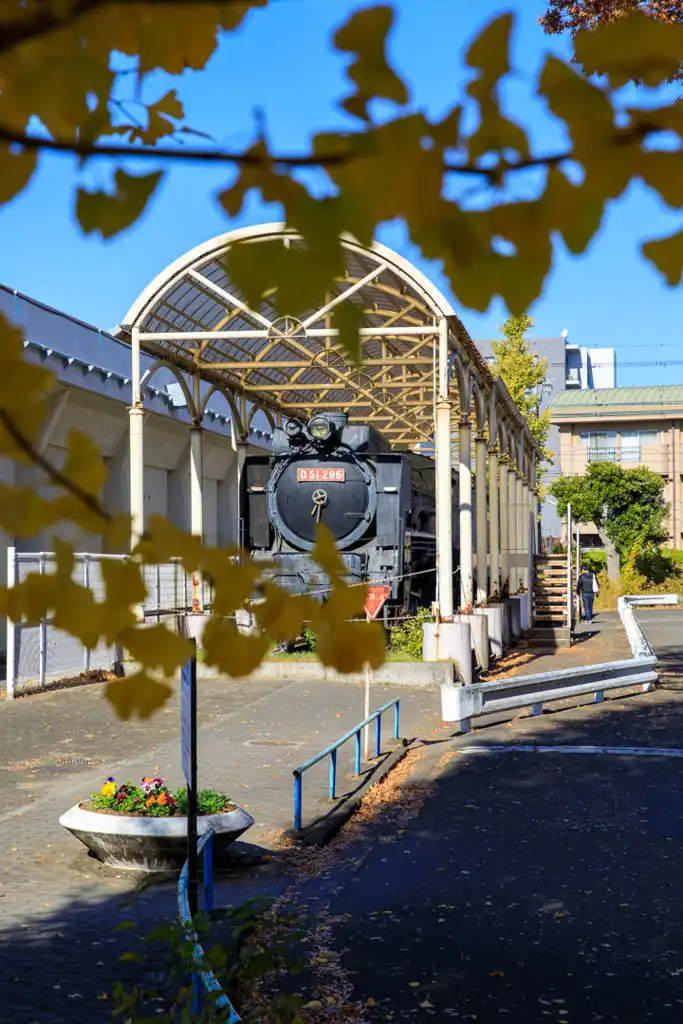 機関車があったので、イチョウを前ボケに撮ってみました。
