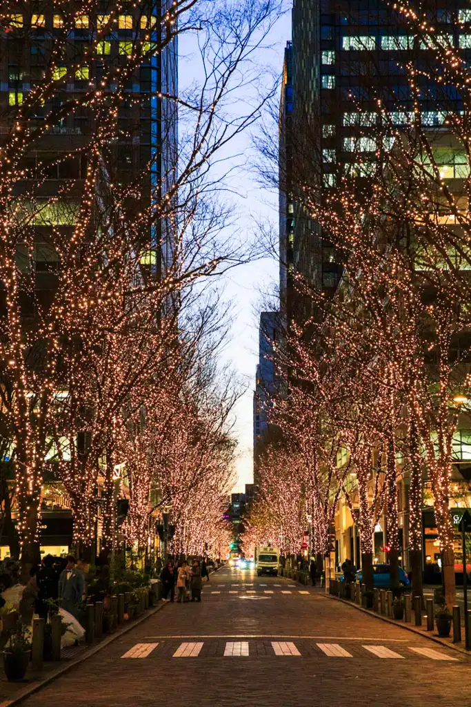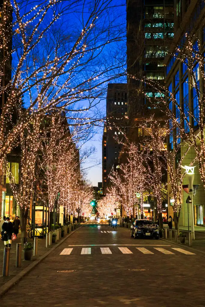 上品な丸の内の街並みと、シャンパンゴールド色のイルミネーションが街を彩ります。