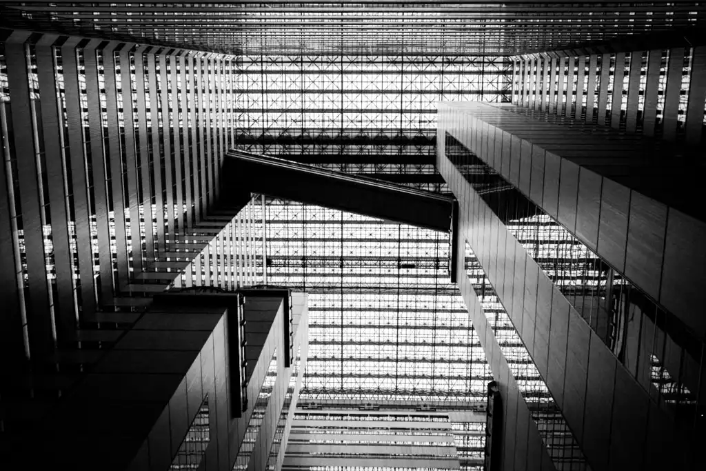 新宿NSビルは1982年に完成した高層ビルで、地上30階・地下3階、高さ134mの堂々たる姿を誇ります。建物の大きな特徴は、吹き抜けのアトリウム空間です。中に入ると、天井まで吹き抜けになっており、見上げるとまるで未来都市に迷い込んだかのような錯覚に陥ります。天井からは自然光が柔らかく差し込み、時間帯によって陰影の表情が変わるため、同じ構図でもまったく違う雰囲気の写真が撮れるのも魅力です。