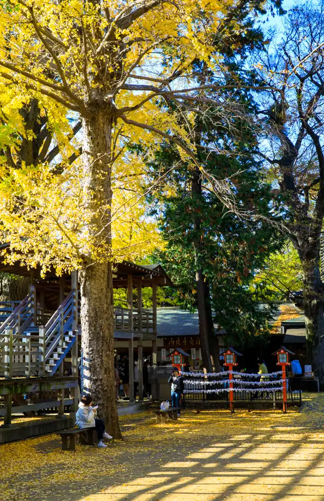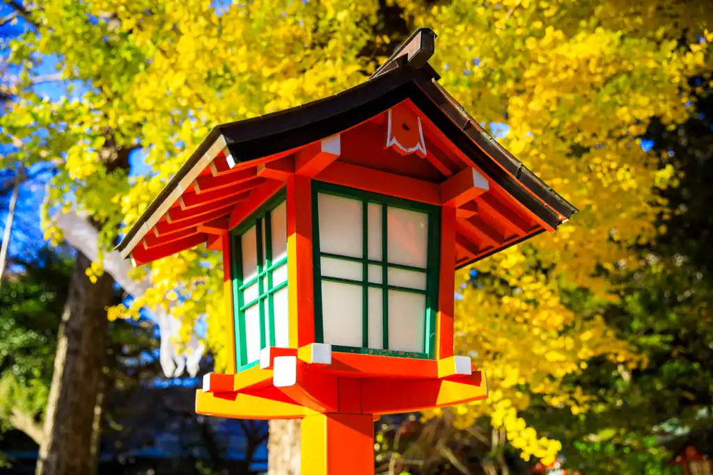 不動尊っぽい写真にしたくて、イチョウとおみくじ掛けを撮ってみました。