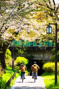 - 反射を活かす: 風が穏やかな日は、運河の水面に桜とビル群がリフレクションします。
