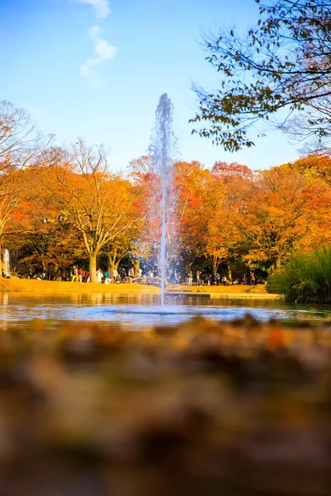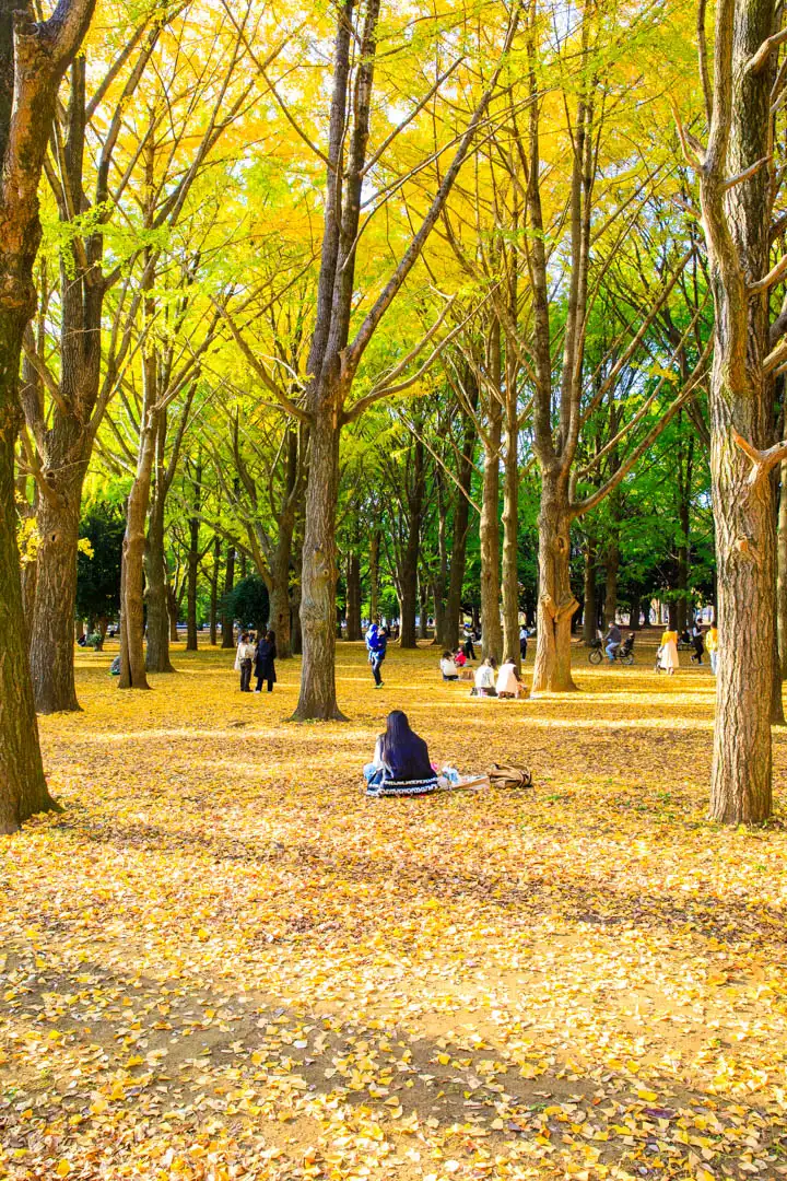 落ち葉の絨毯に座り込んでいる人がたくさんいたので、のんびりした風景を撮りました。